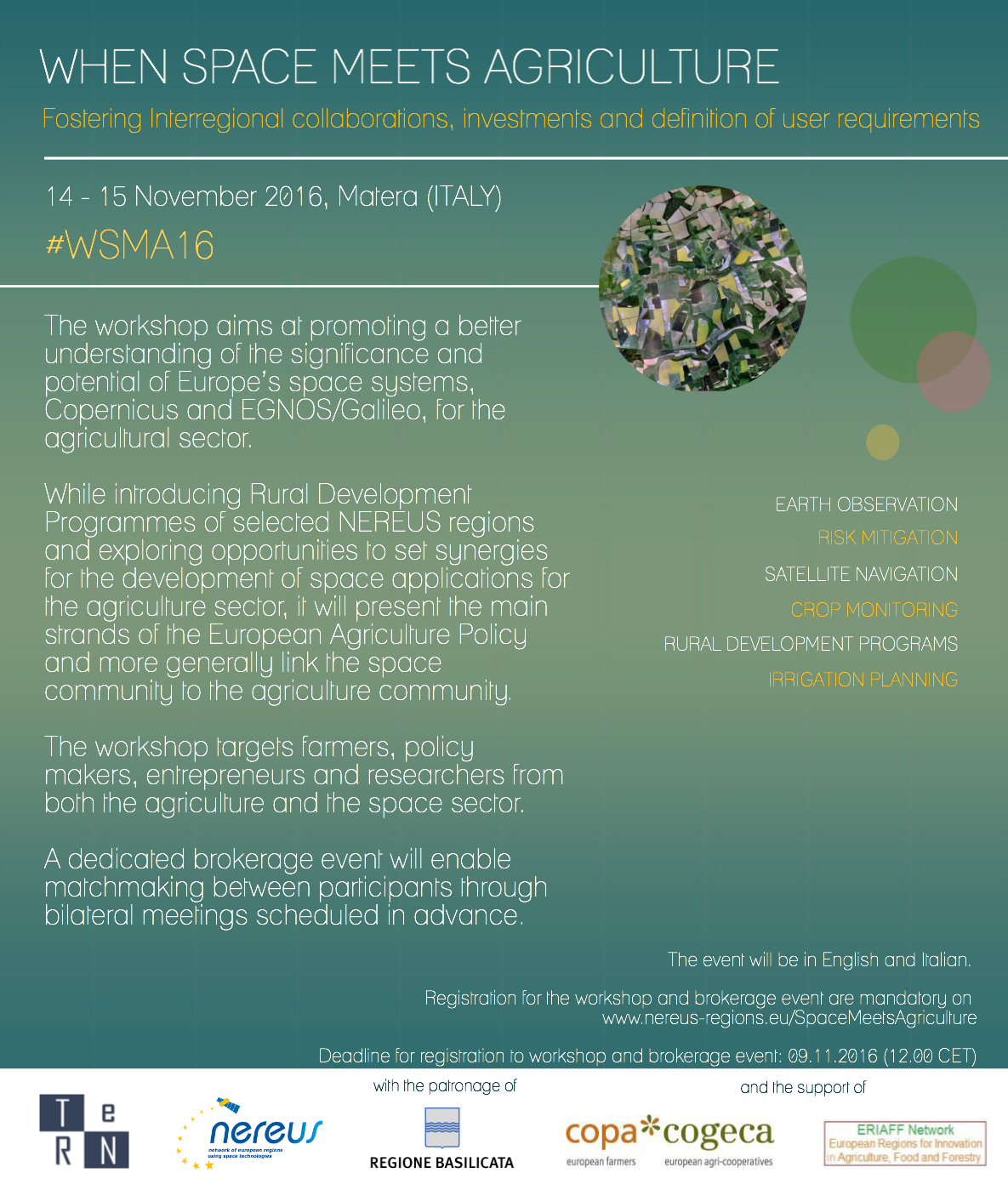 - TeRN Consortium – Basilicata Aerospace Cluster: Space Technologies in Agriculture, solutions for precision farming |Angelo DONVITO (TeRN Consortium)