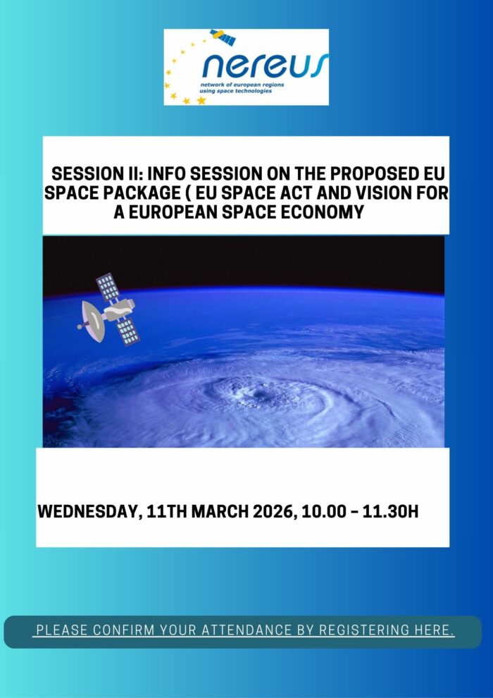 NEREUS organises Session II: Info session on the proposed EU Space Package ( EU Space Act and Vision for a European Space Economy), as part of its series of online events on the proposed EU Space Package. The info session will take place on Wednesday, 11th March 2026, 10.00 – 11.30h.