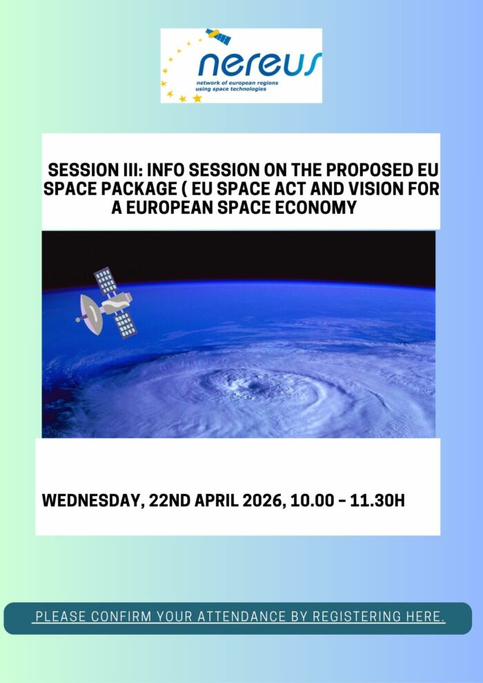 NEREUS organises Session III: Info session on the proposed EU Space Package ( EU Space Act and Vision for a European Space Economy), as part of its series of online events on the proposed EU Space Package. The info session will take place on Wednesday, 22nd April 2026, 10 – 11.30h .